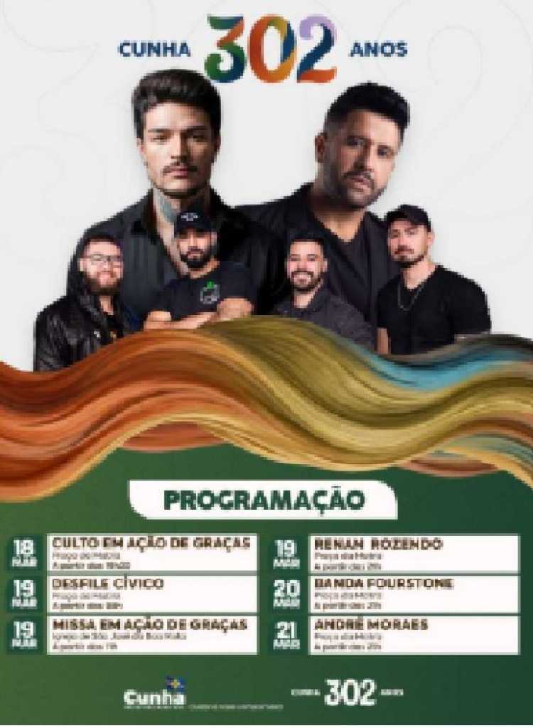 Além das apresentações musicais em praça pública, a celebração dos 302 anos exalta a identidade cunhense, marcada pela tradição da cerâmica, a gastronomia típica e o acolhimento característico da cidade.